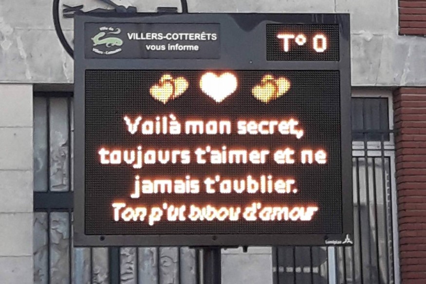 Pour la Saint-Valentin, Villers-Cotterêts propose aux amoureux de déclarer leur flamme sur les panneaux lumineux de la ville, le 14 février prochain.