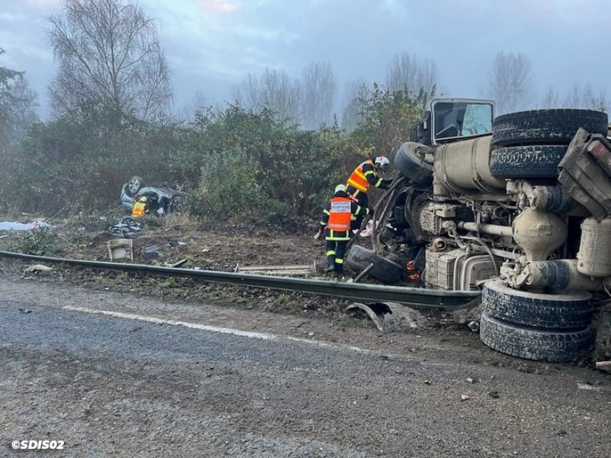 Il était environ 8h30 ce matin lorsqu'un grave accident s'est produit sur la RN31, au niveau de Mercin-et-Vaux près de Soissons. Pour une raison encore inconnue, un camion betteravier s'est retrouvé couché sur la chaussée avant que deux autres voitures soient également impliquées dans l'accident. Bilan : Un mort et deux blessés légers. La victime est une femme d'une quarantaine d'années.